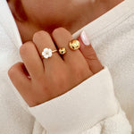 - Bague ouverte en acier inoxydable composée de 2 boules aplaties.