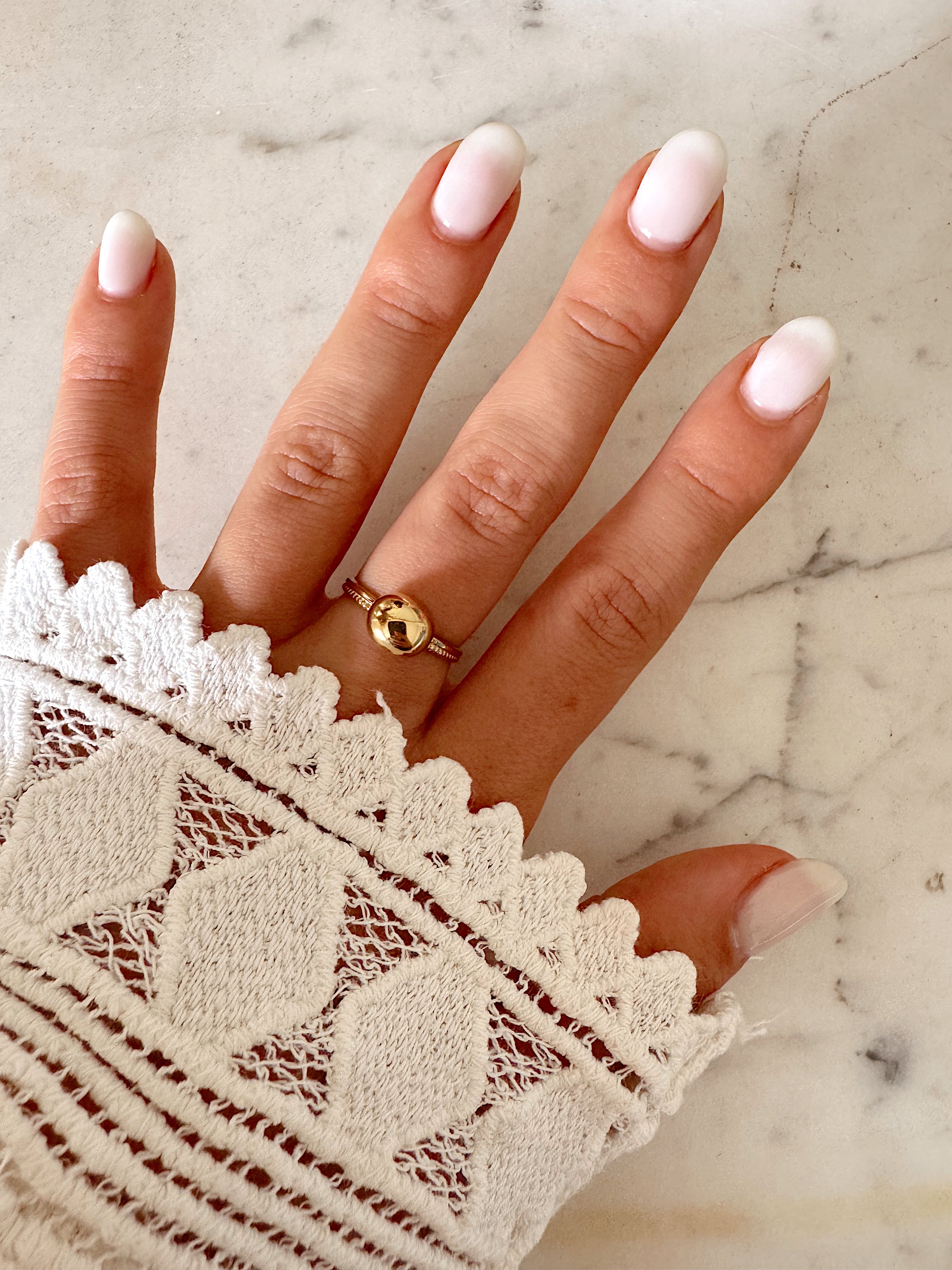 - Bague en acier inoxydable composée d'un forme de rond allongé et bombé.