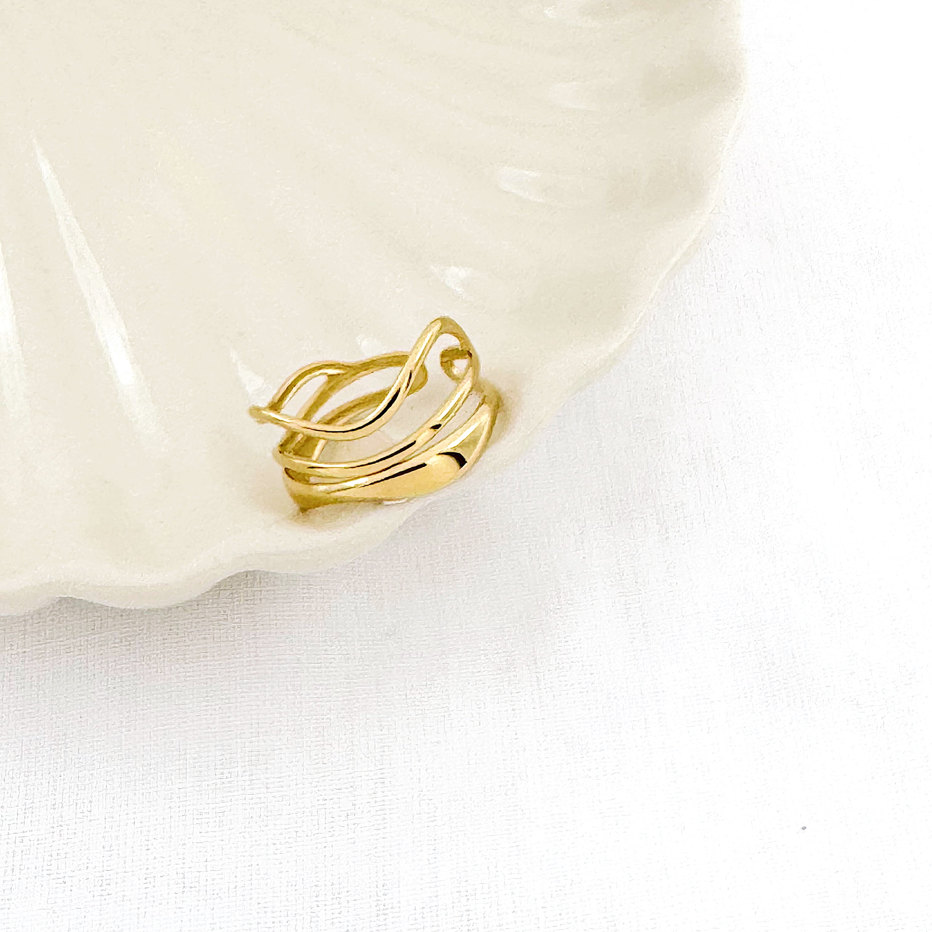 - Bague en acier inoxydable composée de trois anneaux fins ondulés.