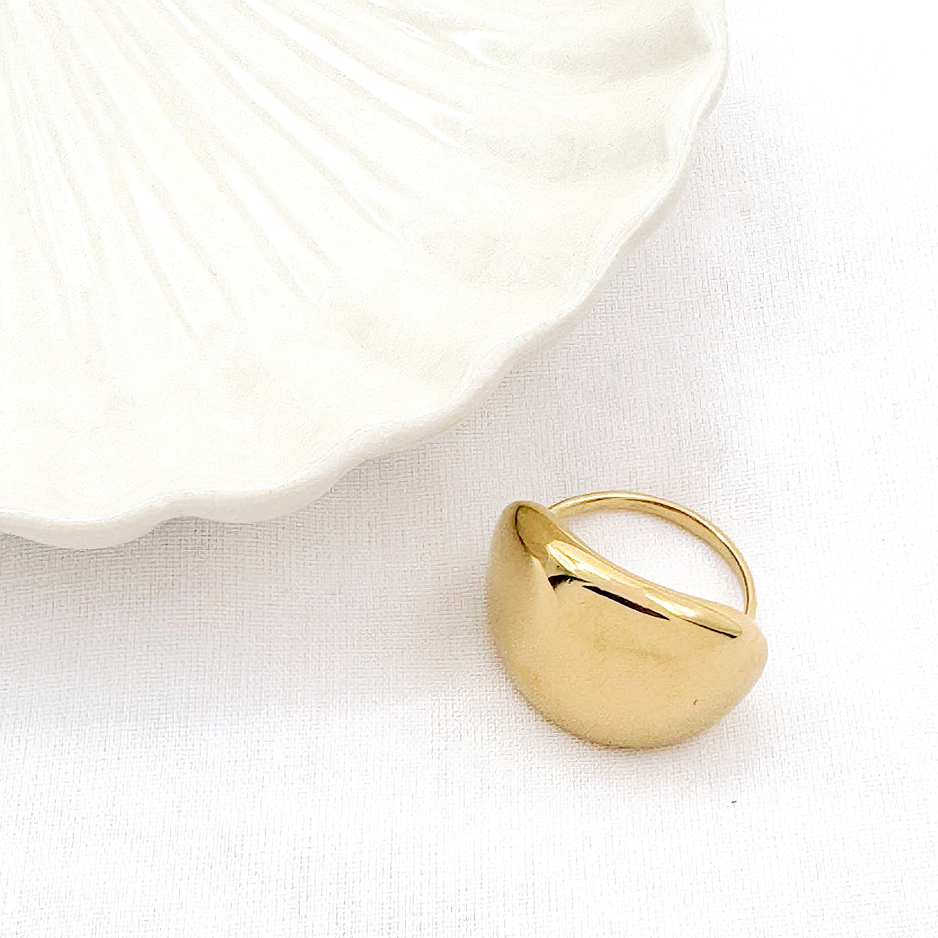 - Bague en acier inoxydable composée d'une forme ovale miroir.