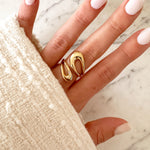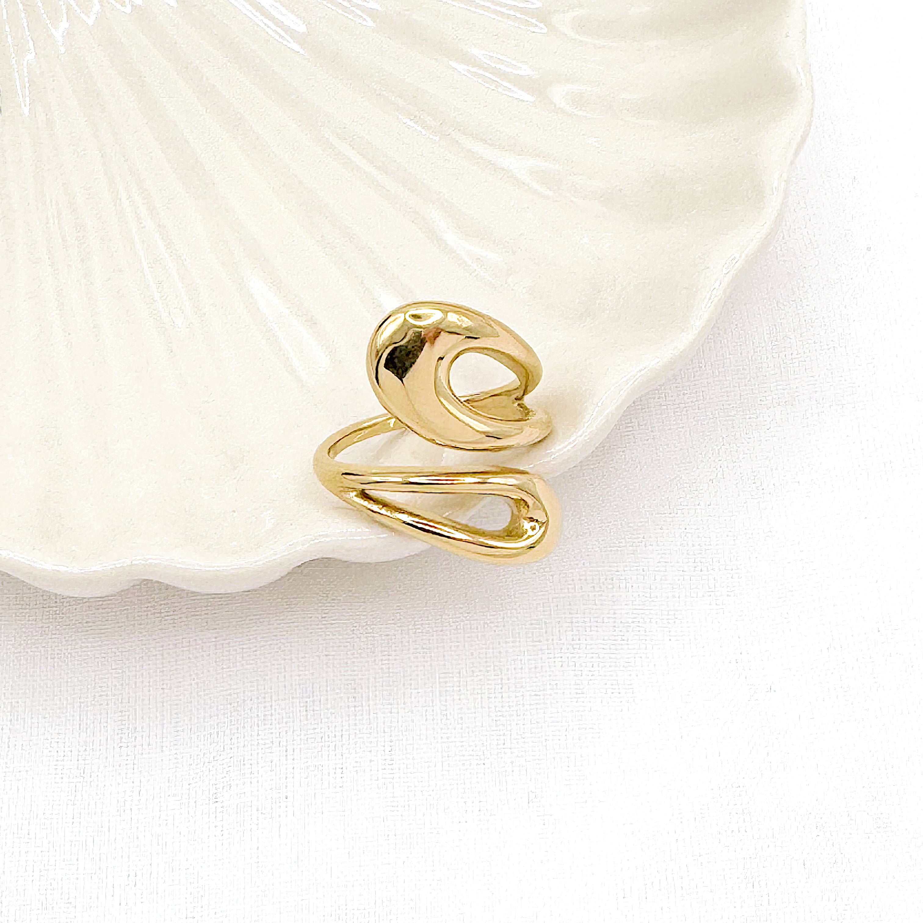 - Bague ouverte en acier inoxydable composée de 2 formes et ajourées.