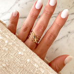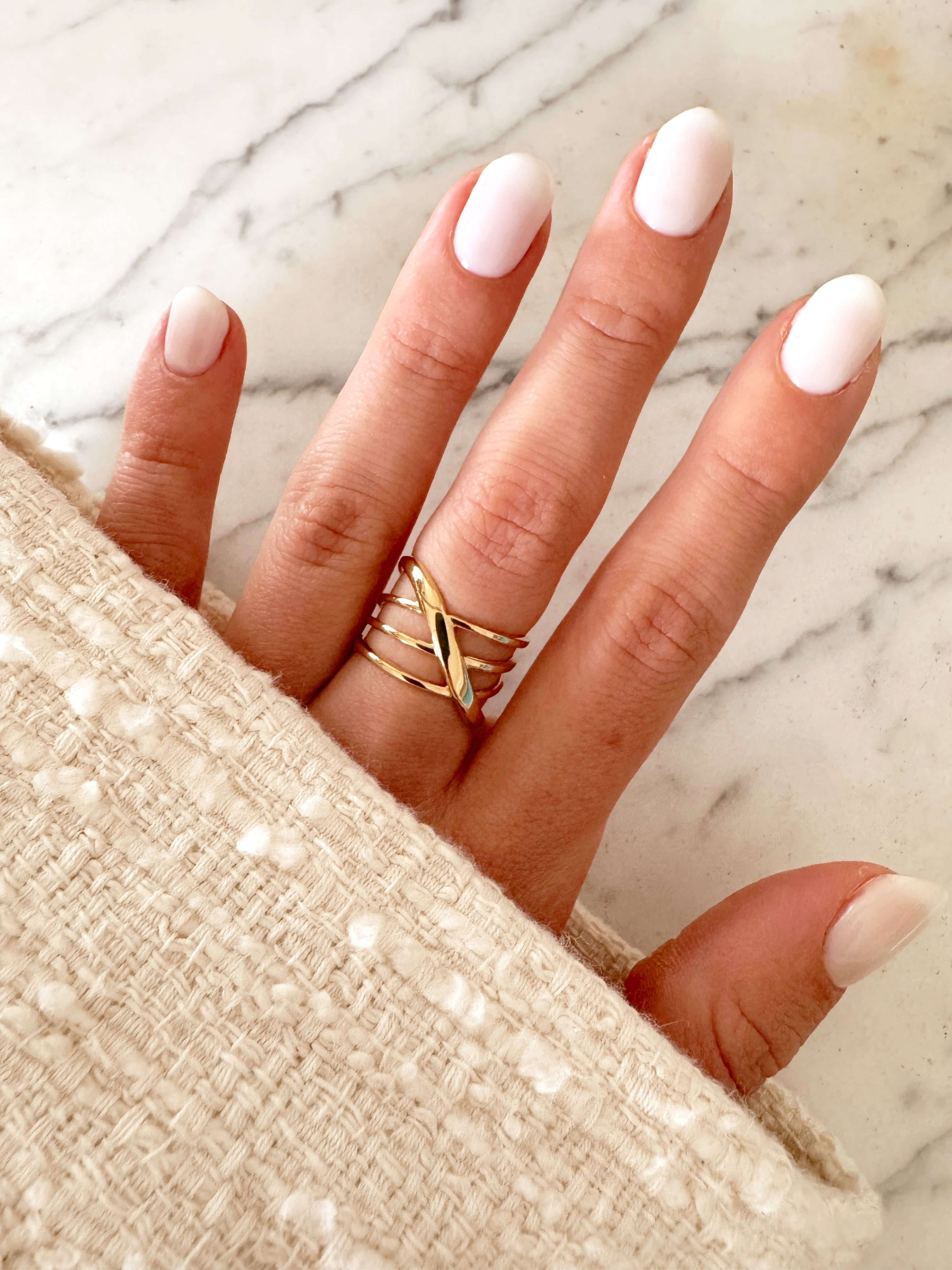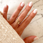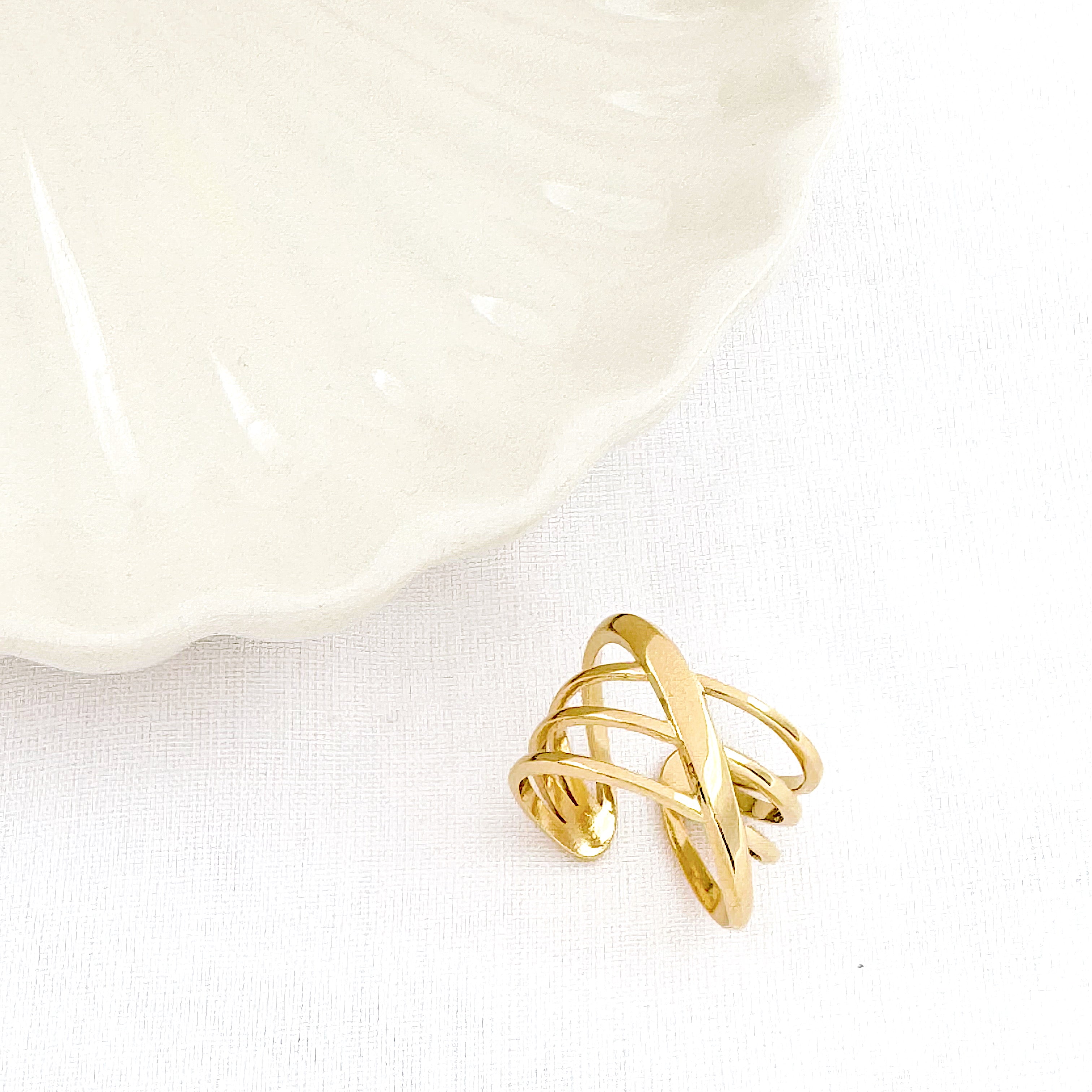 - Bague large en acier inoxydable composée d'anneaux qui s'entrelacent.