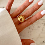 - Bague en acier inoxydable composée d'une forme bombée brillante.