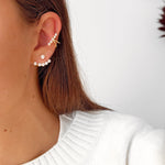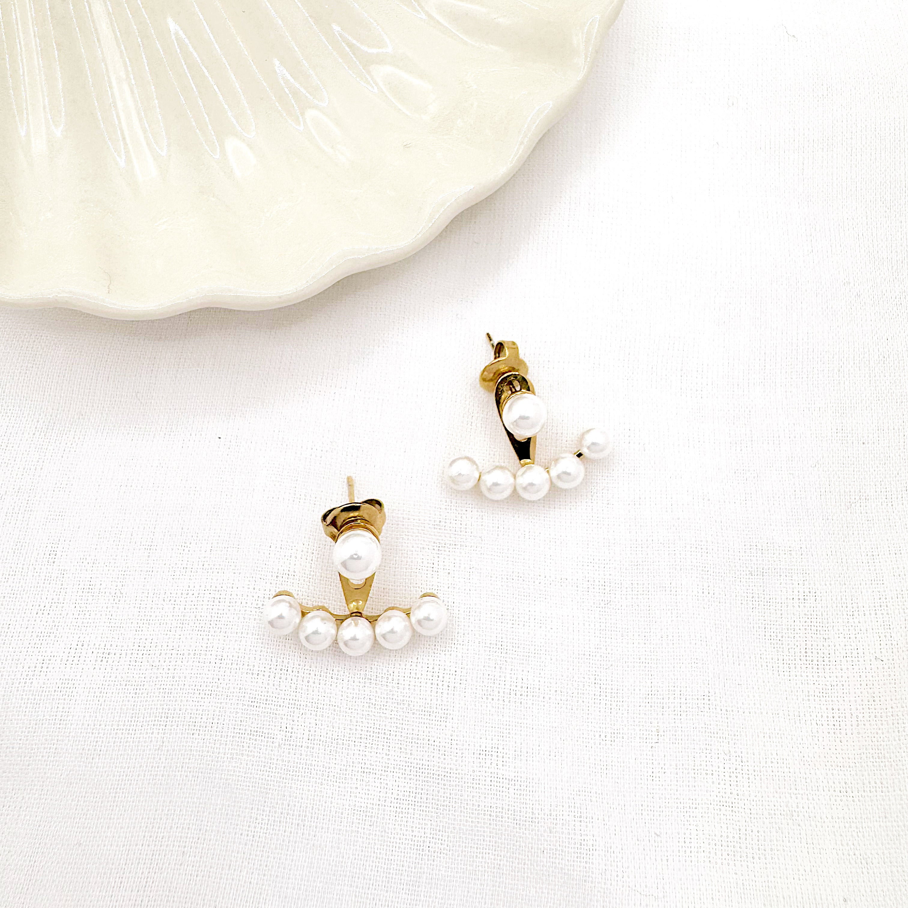 - Boucles d'oreilles à puce en acier inoxydable doré composées d'une puce avec une boule et d'une pièce amovible composée de 5 boules d'acétate effet nacré.