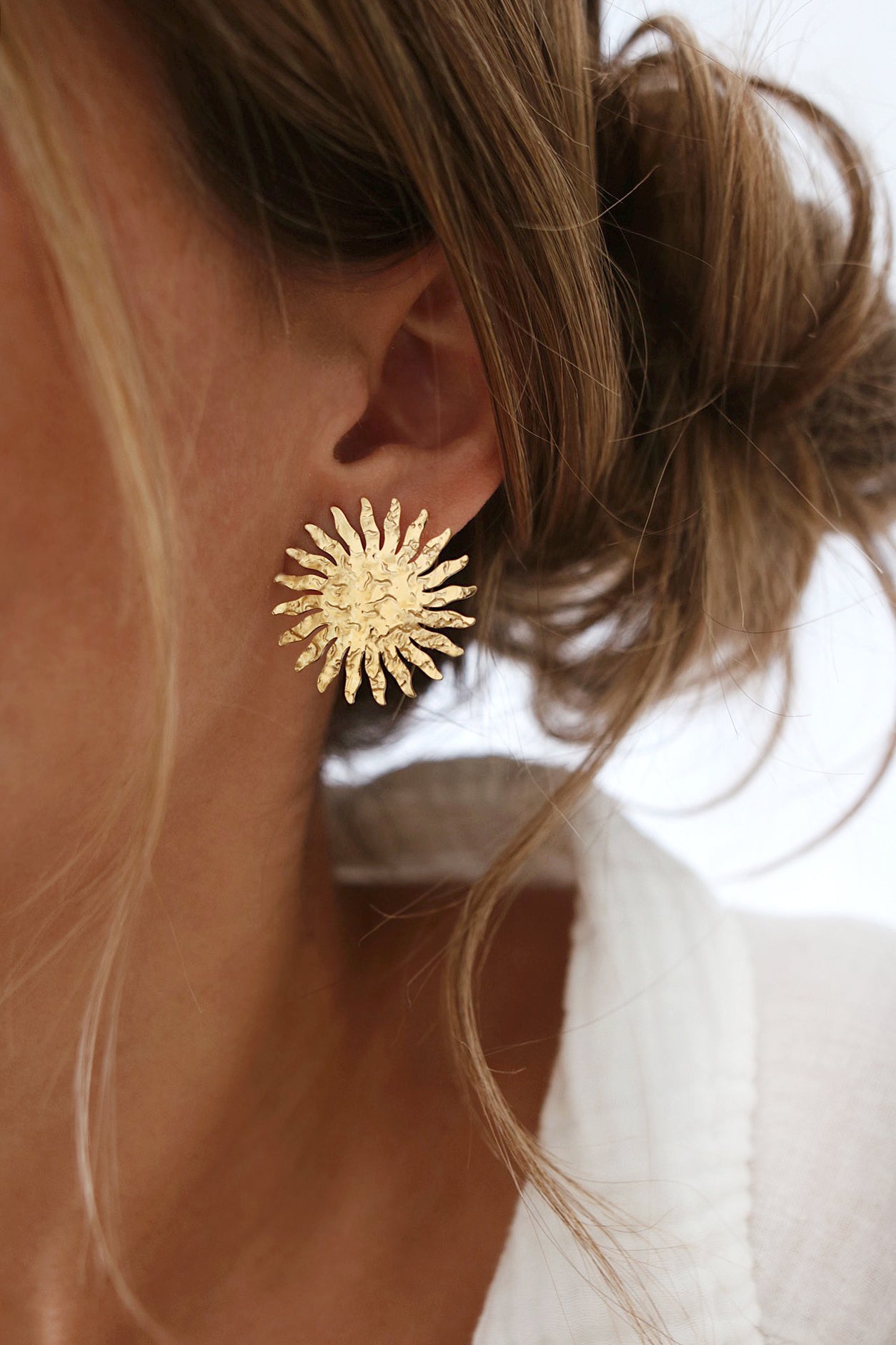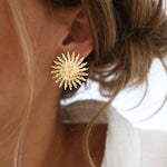 - Boucles d'oreilles puce soleil martelé en acier inoxydable doré