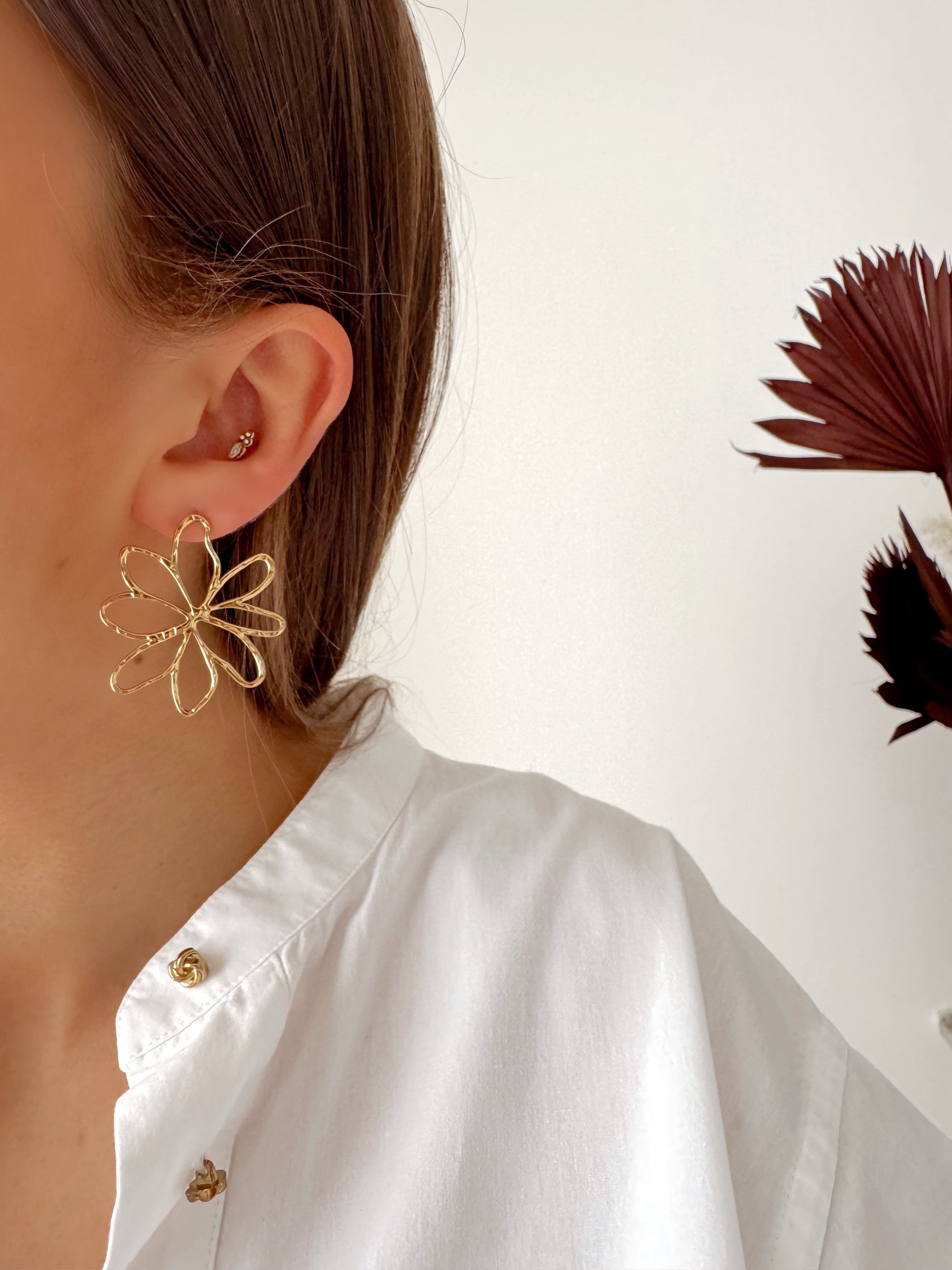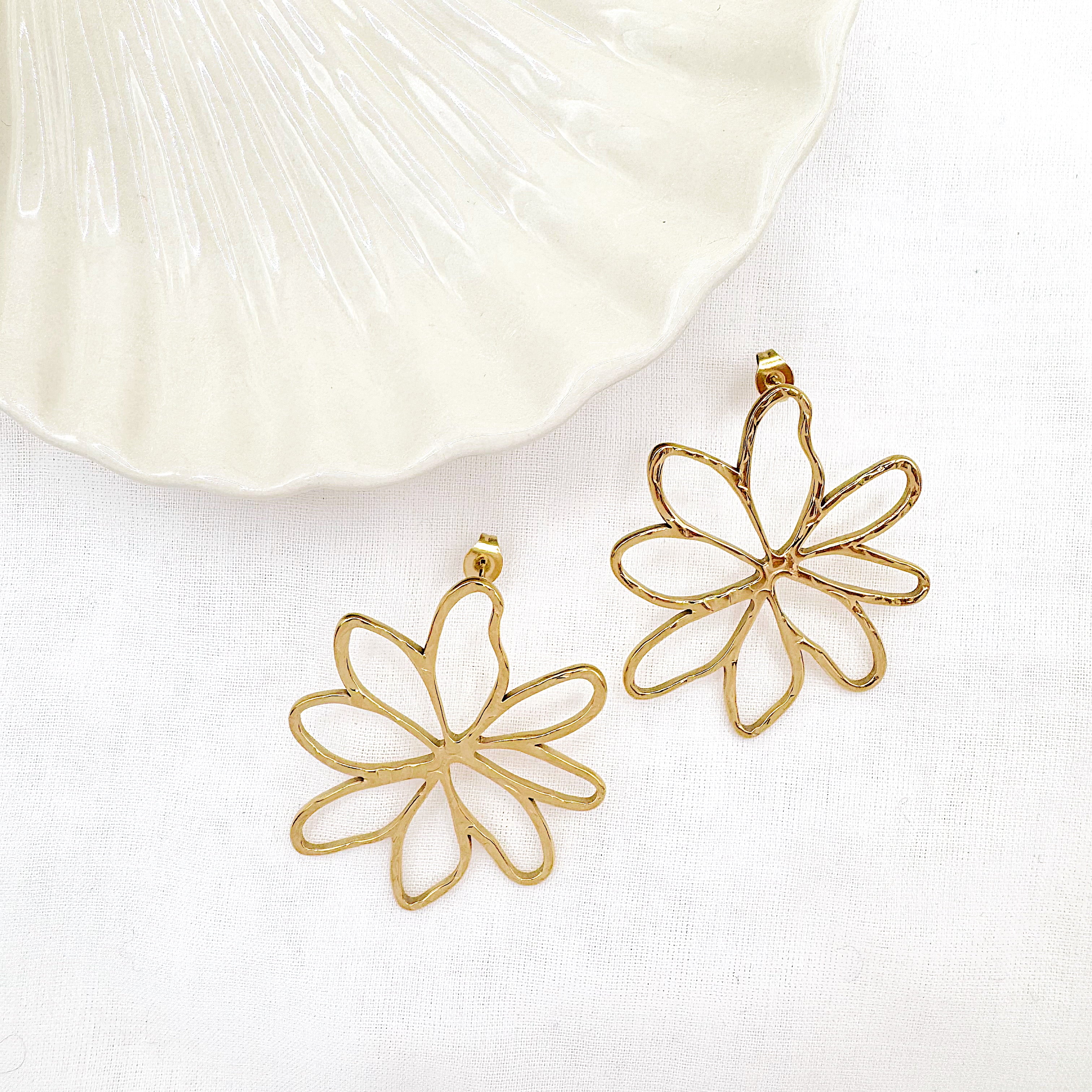 - Boucles d'oreilles fleur en acier inoxydable doré