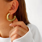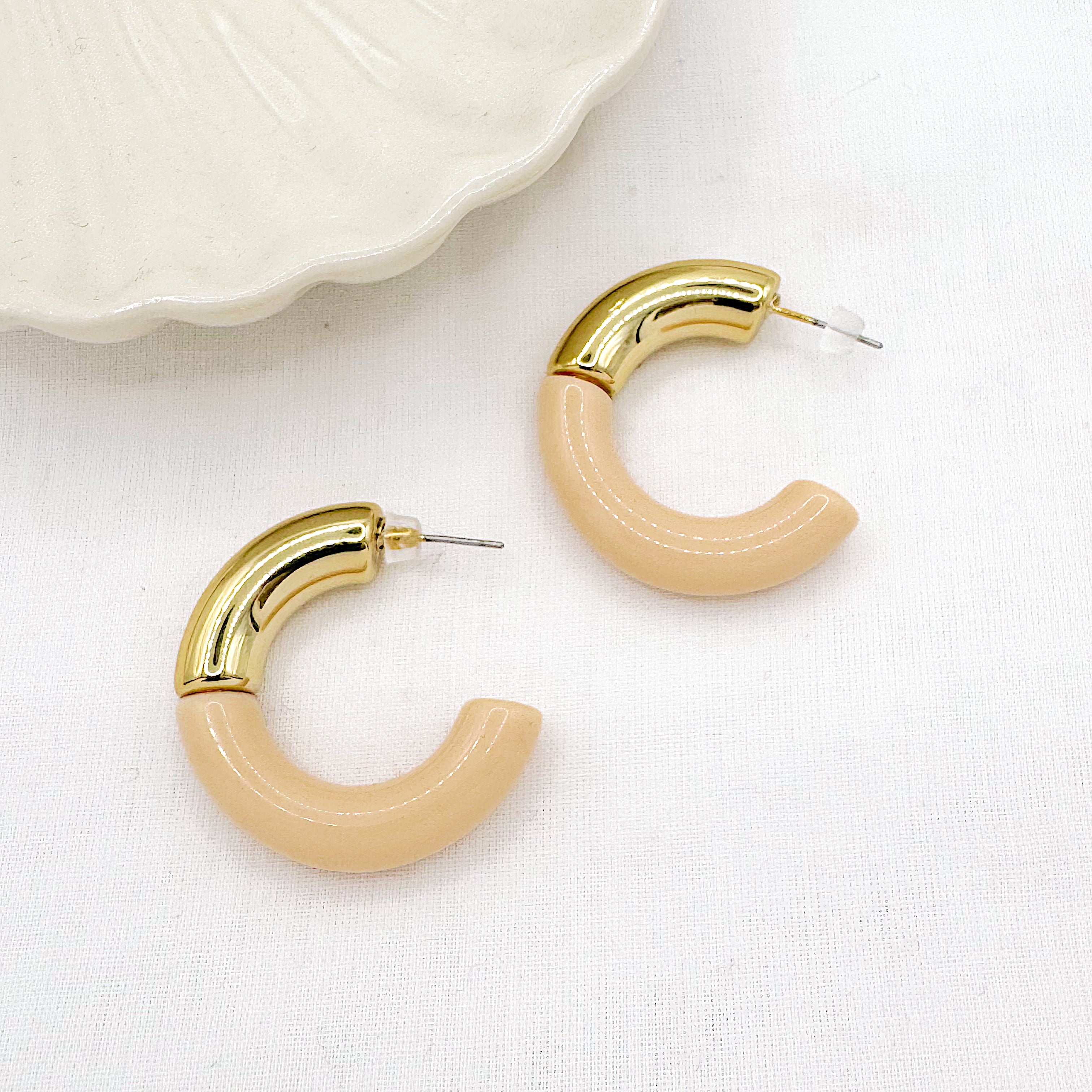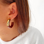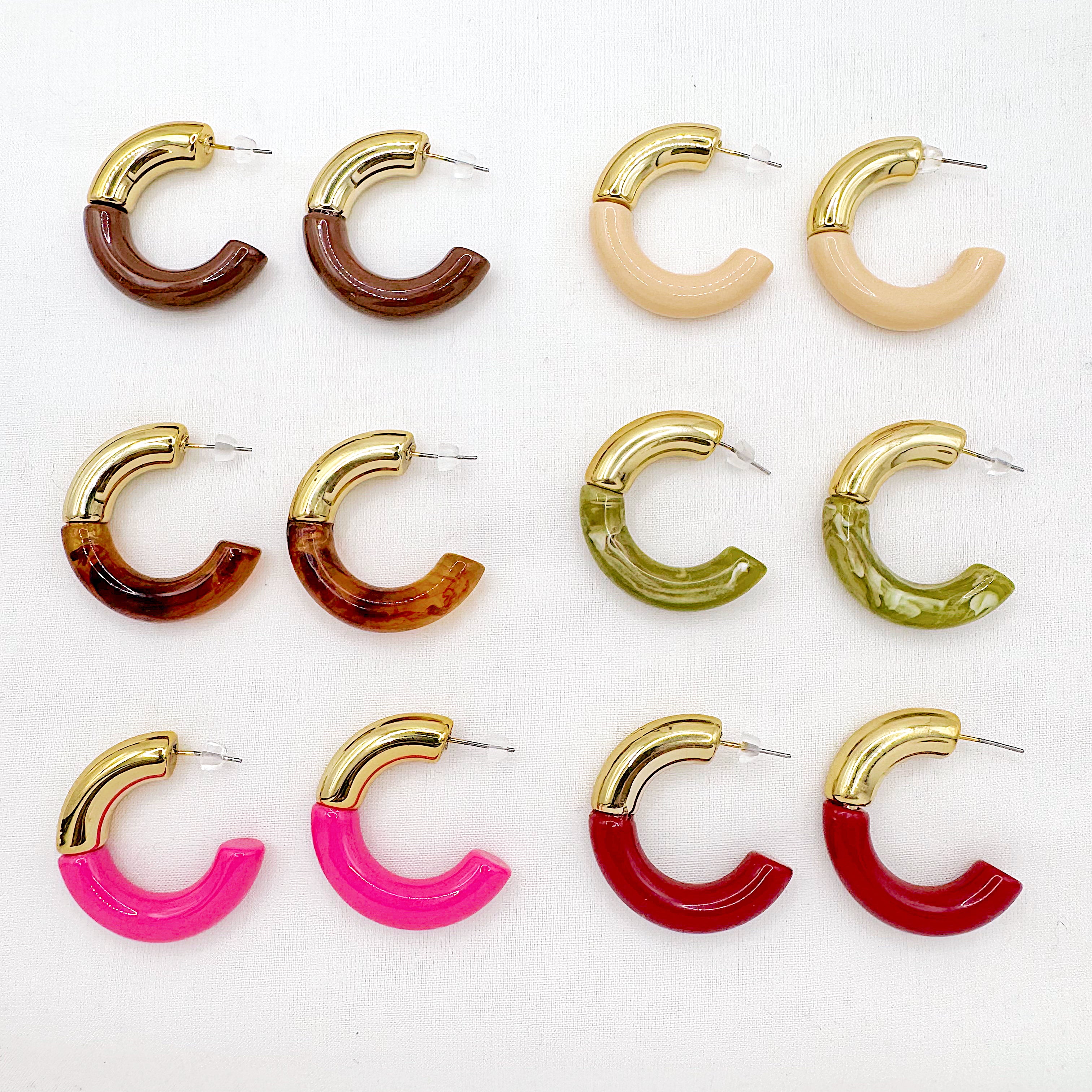 - Boucles d'oreilles demi créole en acier inoxydable doré et acetate
