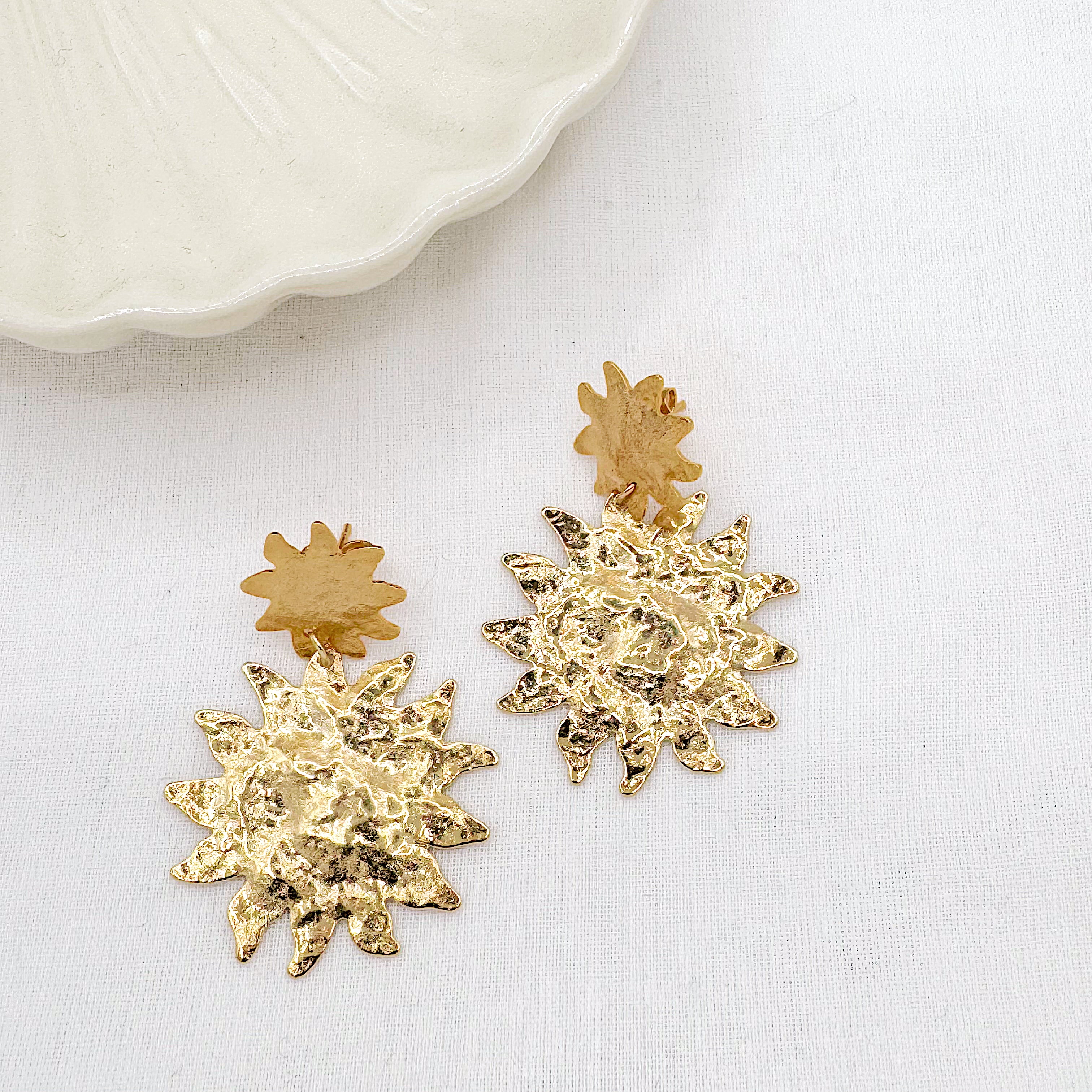 - Boucles d'oreilles soleil en acier inoxydable doré