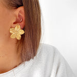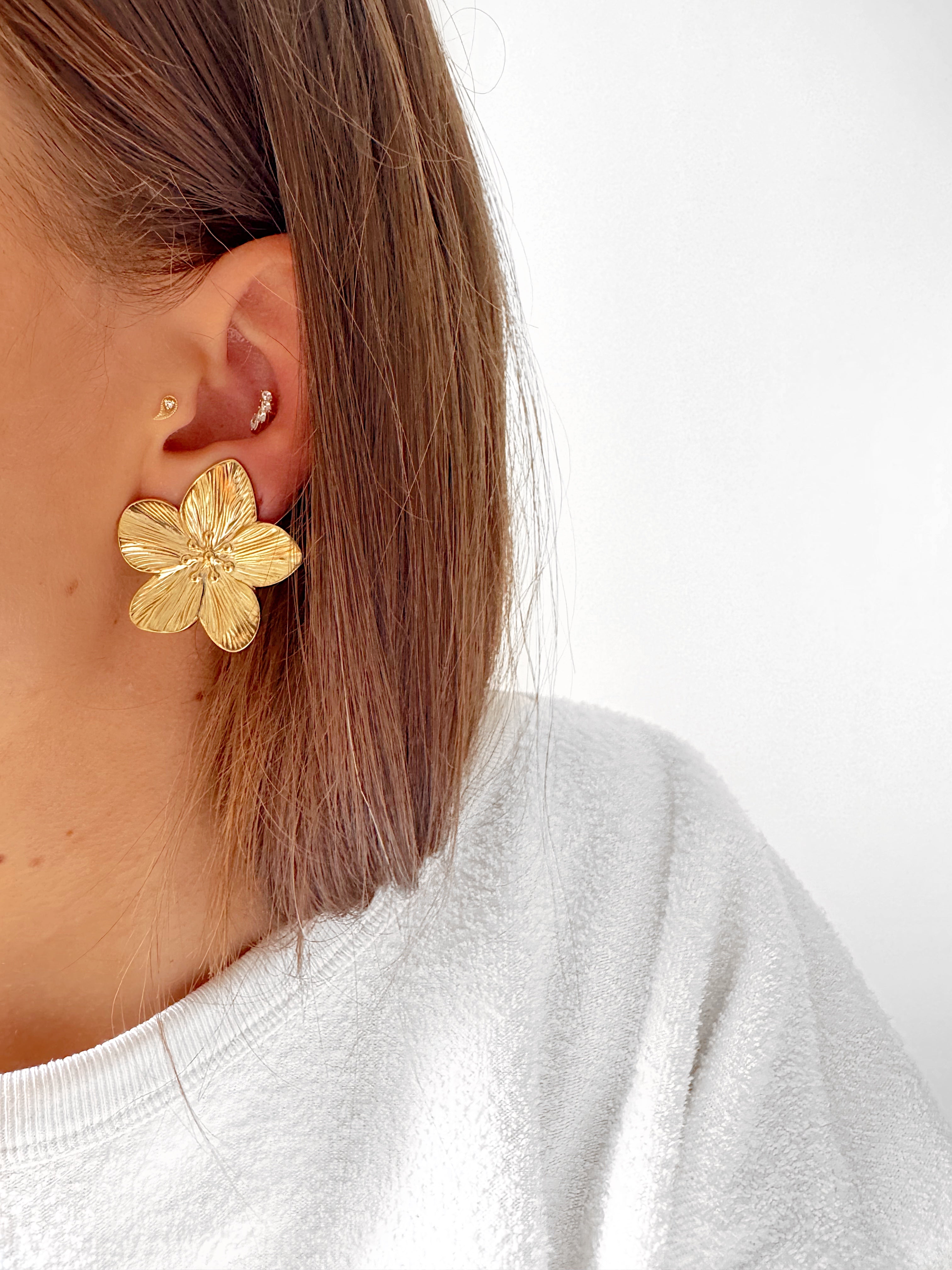 - Boucles d'oreilles fleur en acier inoxydable doré