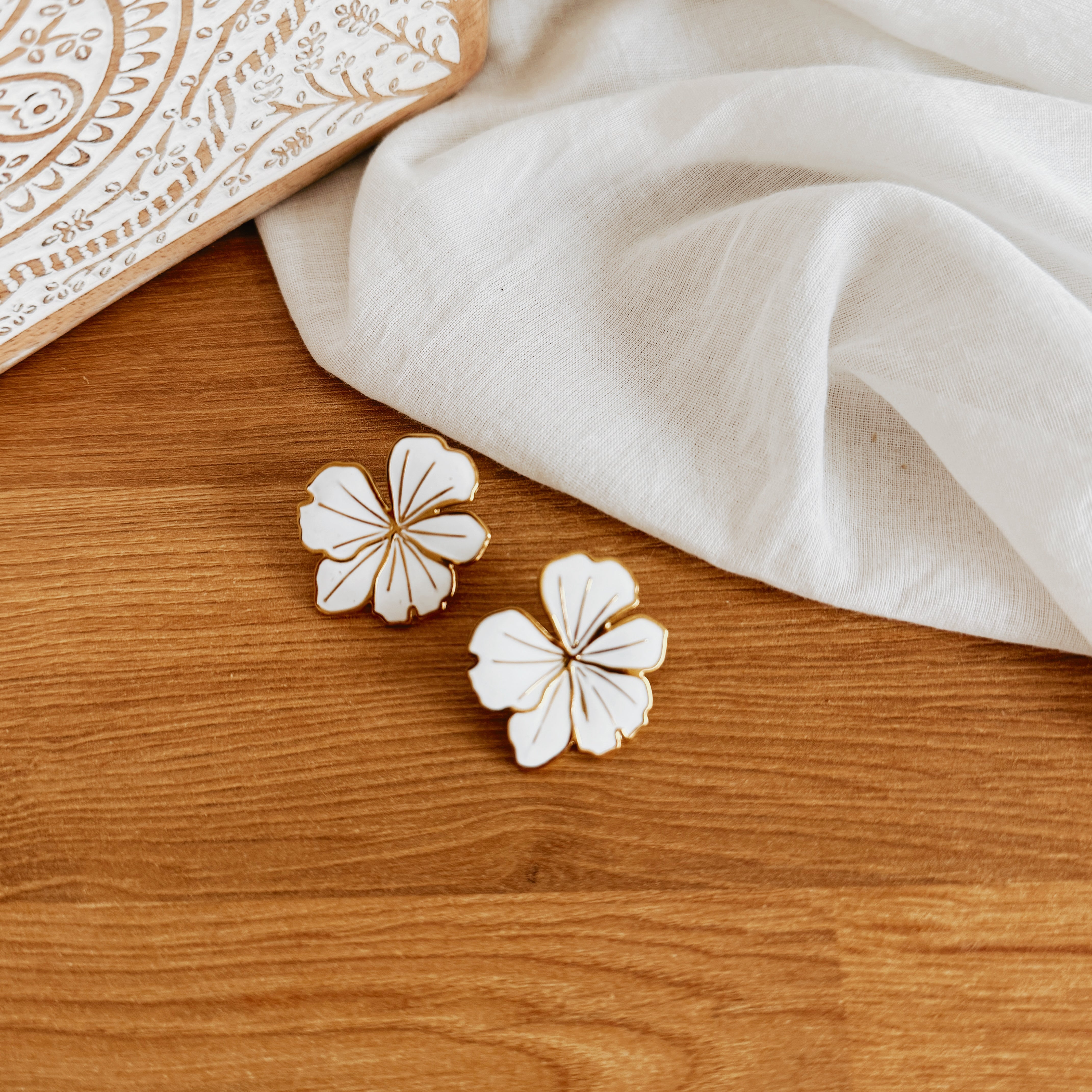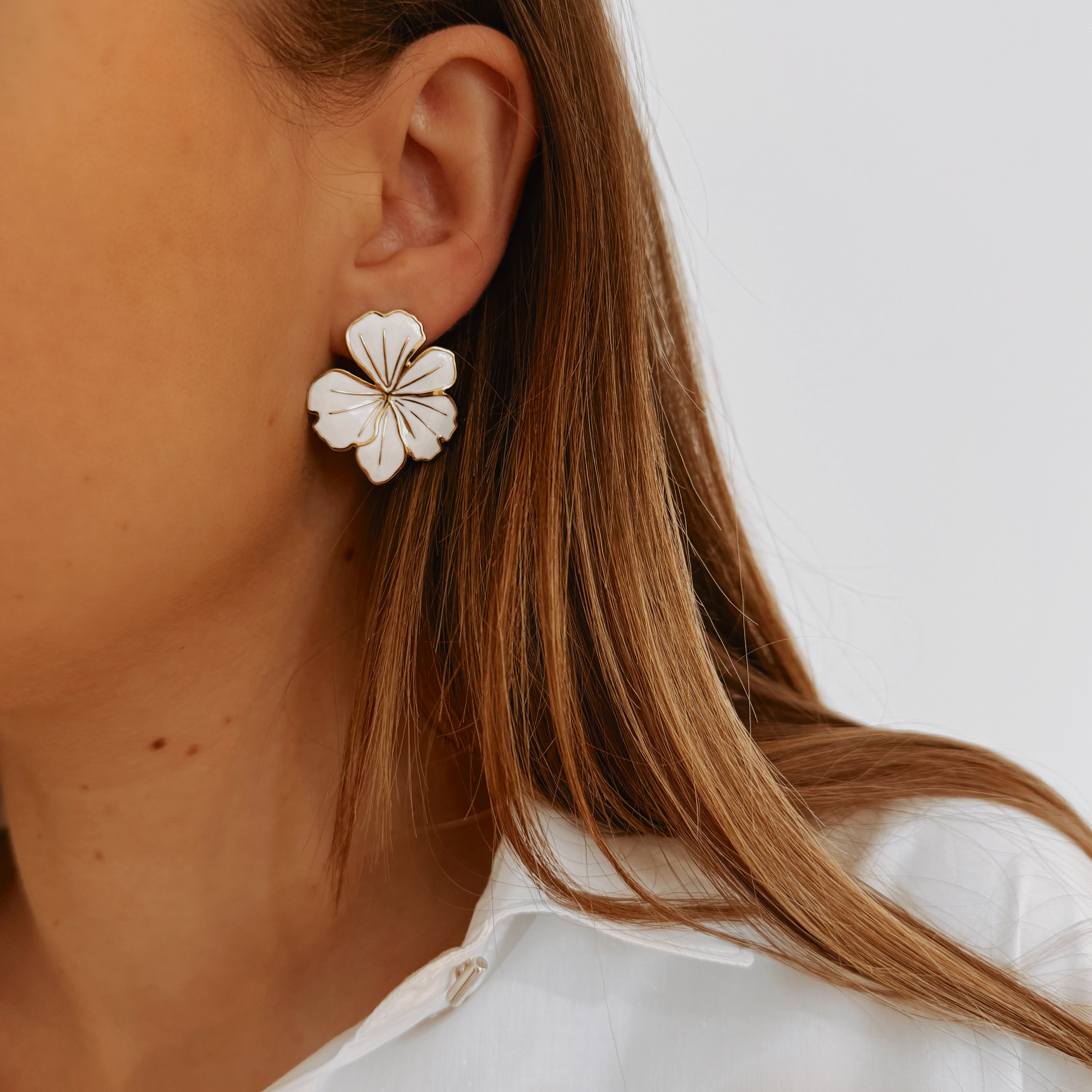 - Boucles d'oreilles puce en forme de fleur, résine et acier inoxydable doré oreille