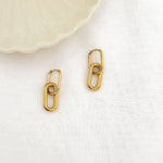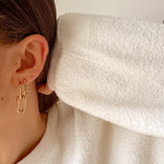 - Boucles d'oreilles type créoles avec fermoir à charnière en acier inoxydable composées d'un anneau ovale pendant.