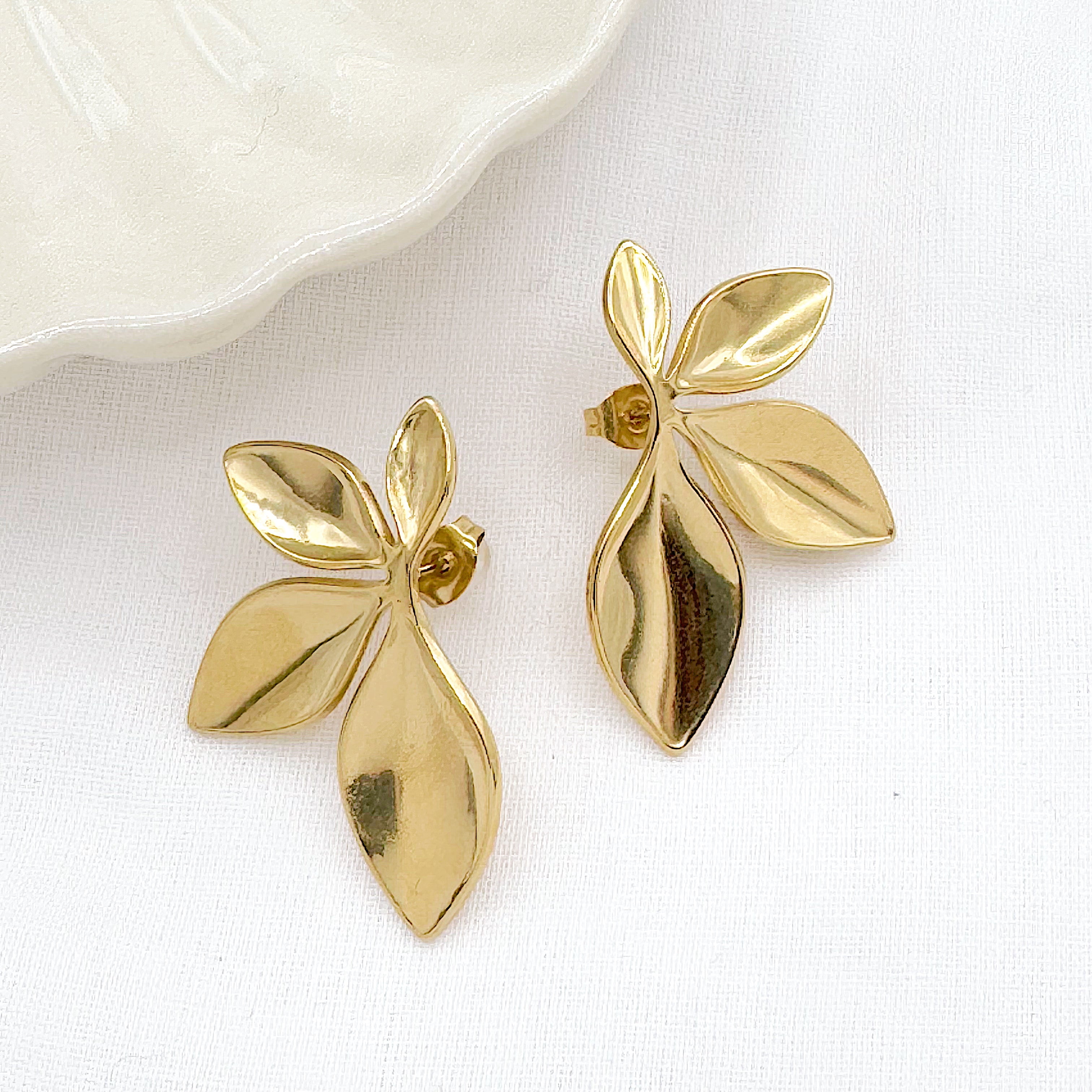 - Boucles d'oreilles fleur en acier inoxydable doré