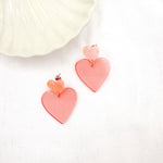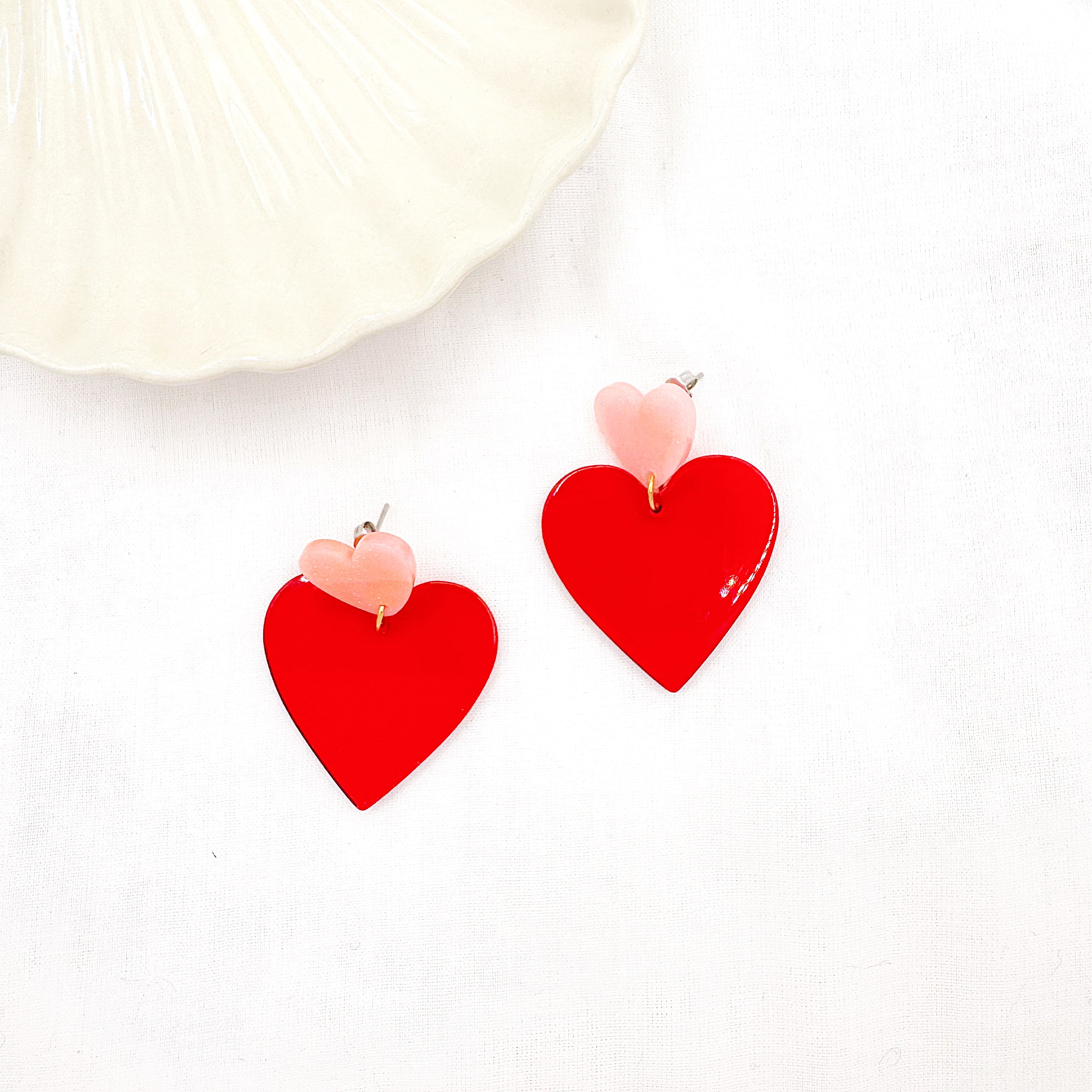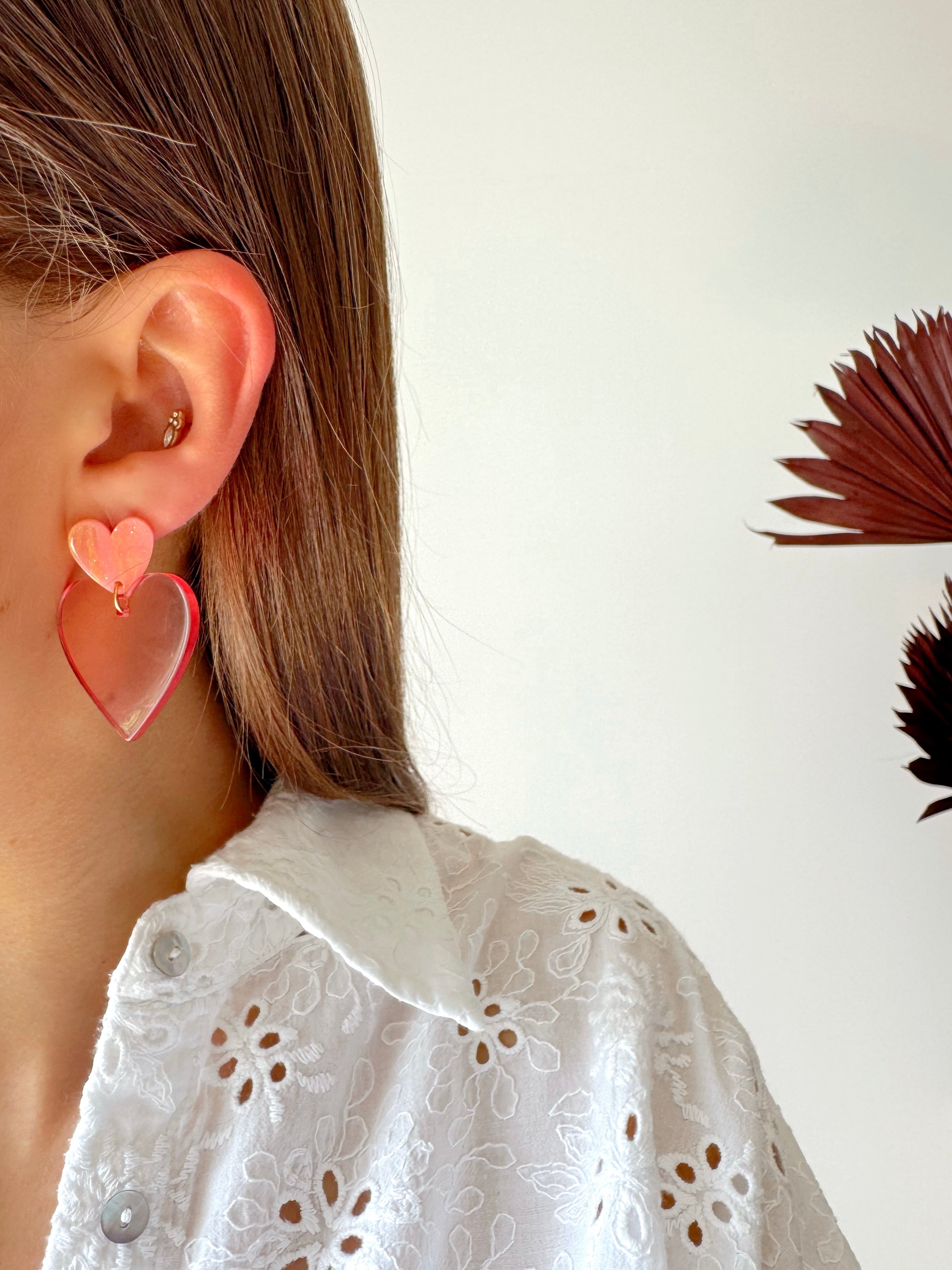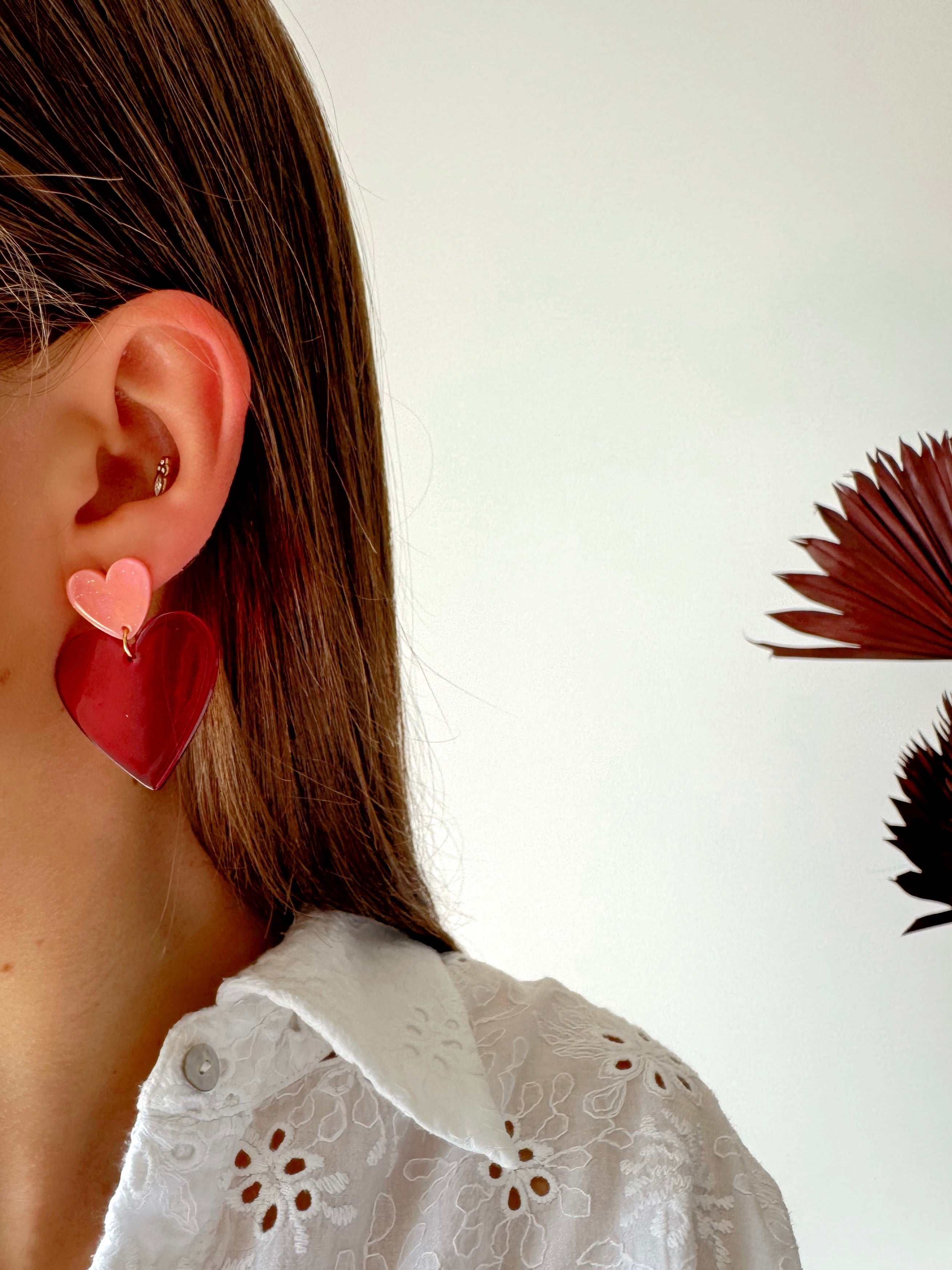 - Boucles d'oreilles coeur en acier inoxydable et résine. Fermoir papillon.