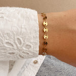 - Bracelet sur chaîne en acier inoxydable composé d'une maille aux anneaux ovales et aux pastilles rondes avec un martelage étoilé.