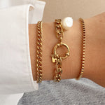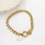 - Bracelet sur chaîne en acier inoxydable composé d'une maille gourmette, d'un fermoir bouée et d'une perle d'eau douce.