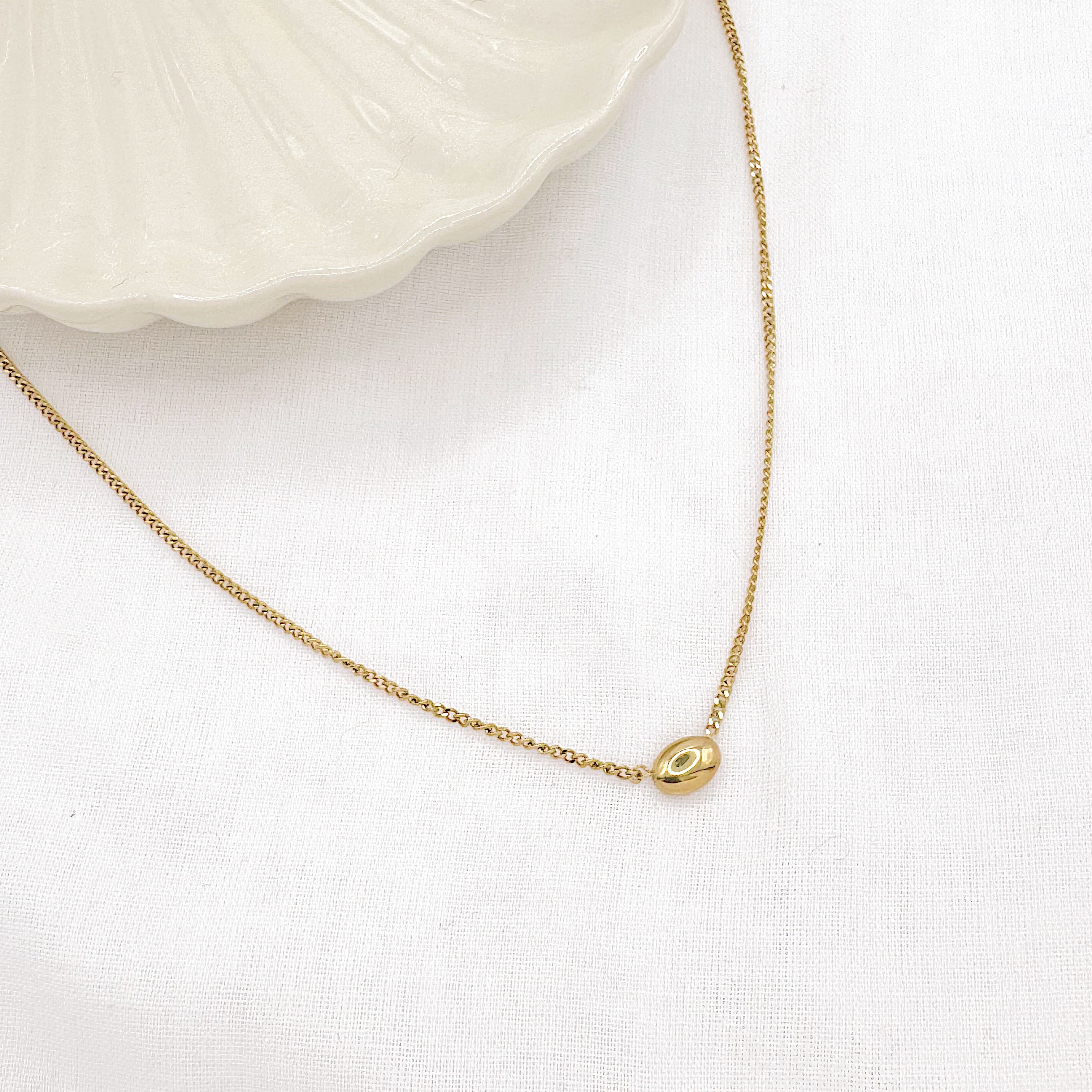 - Collier sur chaîne en acier inoxydable composé d'un petit pendentif ovale.