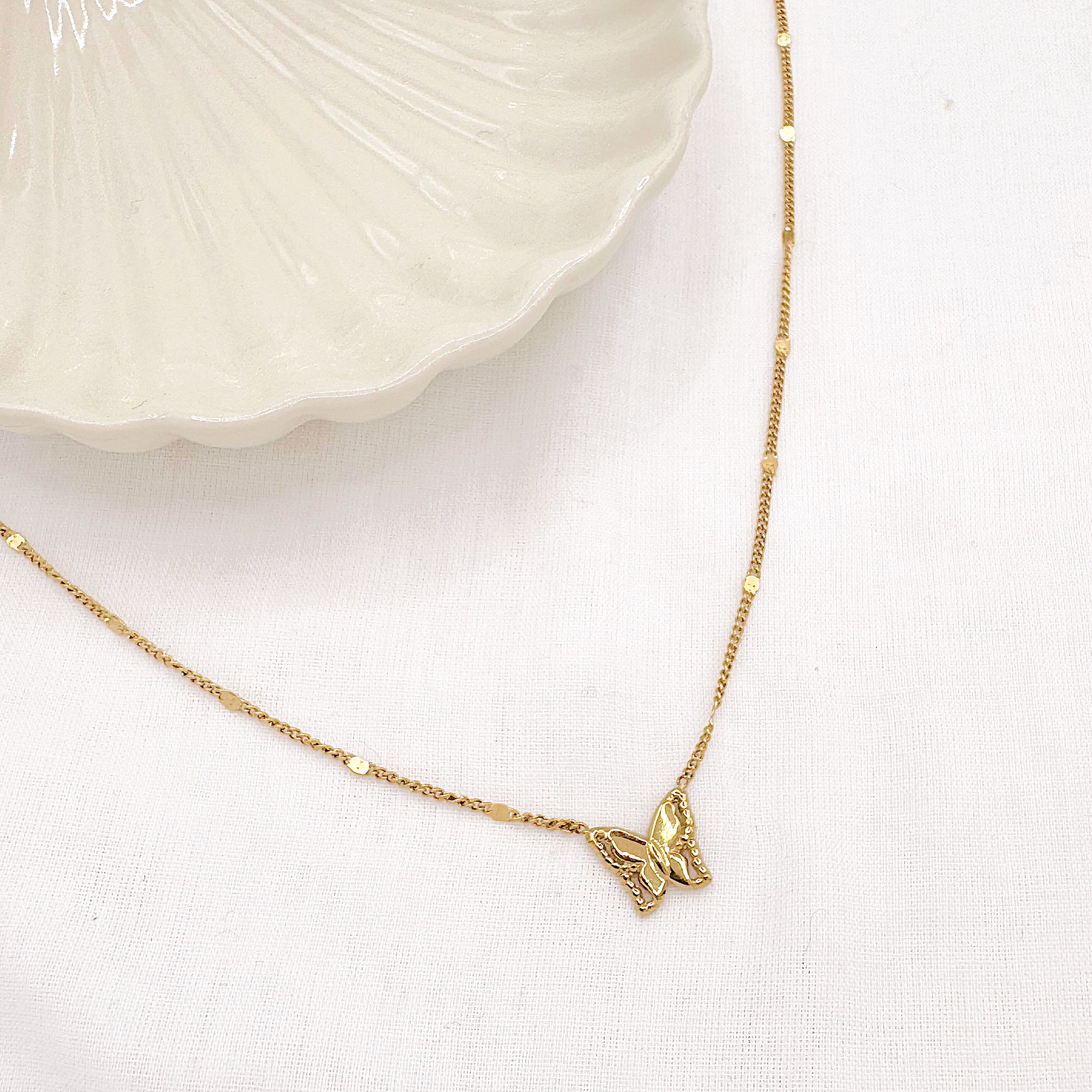 - Collier en acier inoxydable composé d'un pendentif en forme de papillon.